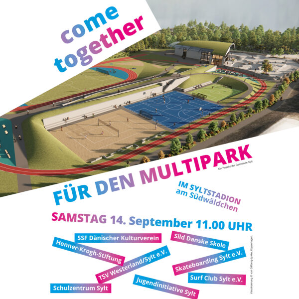 Am 14. September um 11:00 Uhr laden der TSV Westerland, der Surf Club Sylt, der Skateboarding Sylt e.V., die dänische Minderheit, die Henner-Krogh-Stiftung, die Jugendinitiative, das Schulzentrum alle Multipark-Freunde ein, um sich im Sylt-Stadion zu treffen.